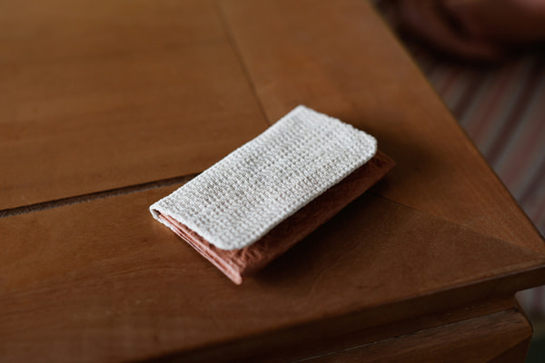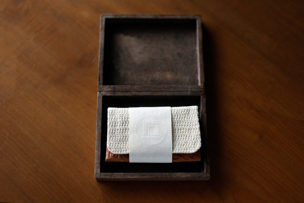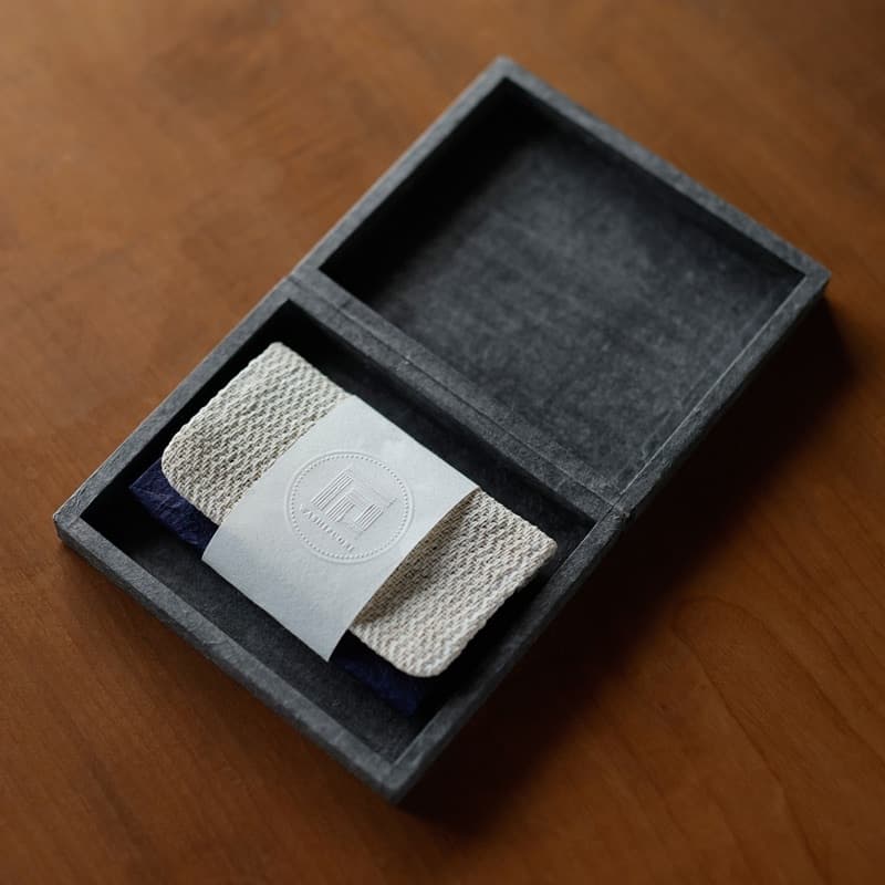 伝統工芸品である「石州和紙」と「紙布」という希少な素材を組みわせた名刺入れ。接着にもこんにゃく糊や米糊など自然由来のものを使用し、更に強度を高めるため島根県産えごま油を塗布しています。自然素材特有の色ムラも一つの個性として捉え、愛着を持って長くお使い頂けることを期待しています。